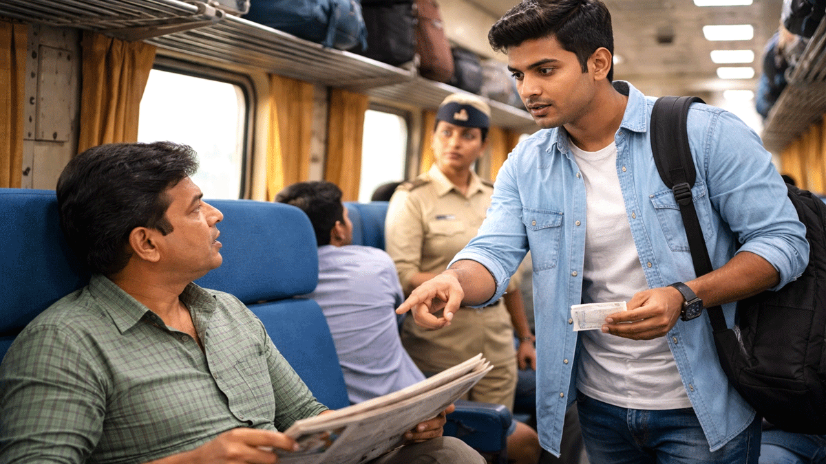 भारत में अगर कोई आपकी रिज़र्व सीट पर बैठ जाए, तो गुस्सा करने या डरने की जरूरत नहीं है. कानून और नियम पूरी तरह आपके साथ हैं. शांत व्यवहार, सही शब्द और स्टाफ की मदद से आप बिना विवाद के अपनी सीट वापस पा सकते हैं.