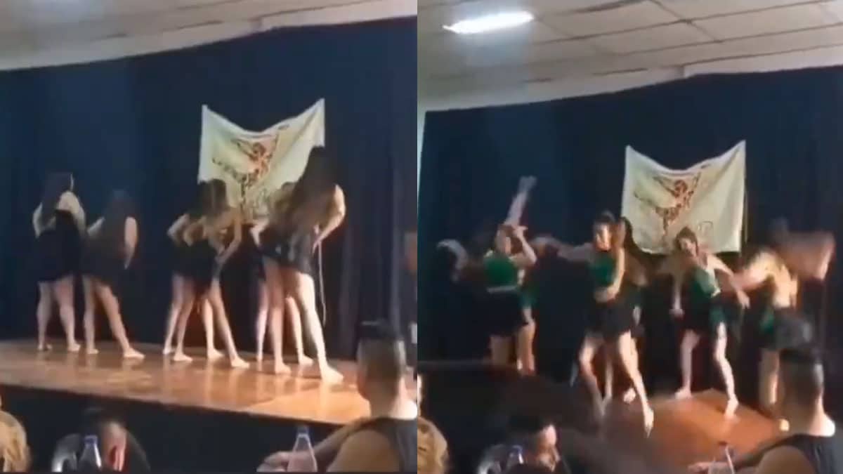 लड़कियों के स्टेज से गिरने का स्टेज से नीचे गिरने का यह वीडियो आग की तरह वायरल हो रहा है. वीडियो में आप देखेंगे कि 6 लड़कियों का एक ग्रुप एक जैसा ड्रेस कोड पहन कर स्टेज पर डांस करना शुरू करती हैं. स्टेज के सामने ही जजेस की कुर्सियां लगी होती हैं. जजेस के पीछे भारी भीड़ मौजूद होती है. वीडियो में आप देखेंगे कि जैसे ही लड़कियां डांस करना शुरू करती हैं तो वहां मौजूद पब्लिक हूटिंग शुरू करती हैं लेकिन अगले ही पल स्टेज पर लड़कियां डांस कर रही होती हैं वह अचानक से टूट जाता है. सारी लड़कियां नीचे गिर जाती हैं. इसके बाद वहां पर हड़कंप मच जाता है और लोग इधर-उधर भागना शुरू कर देते हैं.